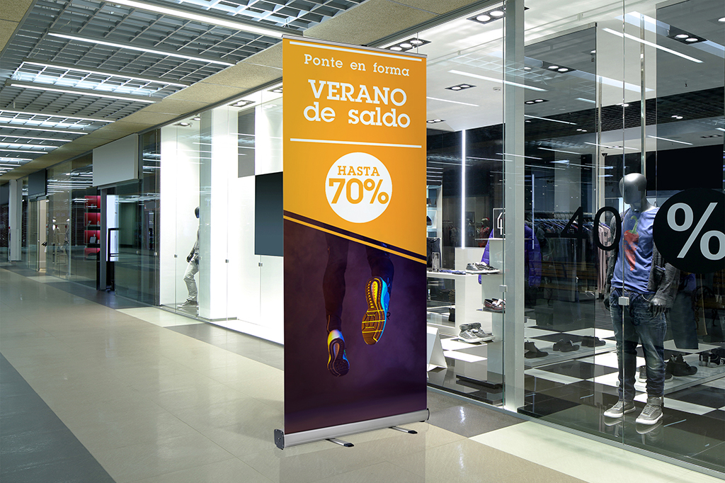 Es un display publicitario económico autoenrollable en un armazón de aluminio que hace que nuestra impresión se muestre y recoja dentro de la misma estructura en pocos segundos.